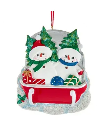 SNOWMAN FAMILY 2 ON SLED ORN